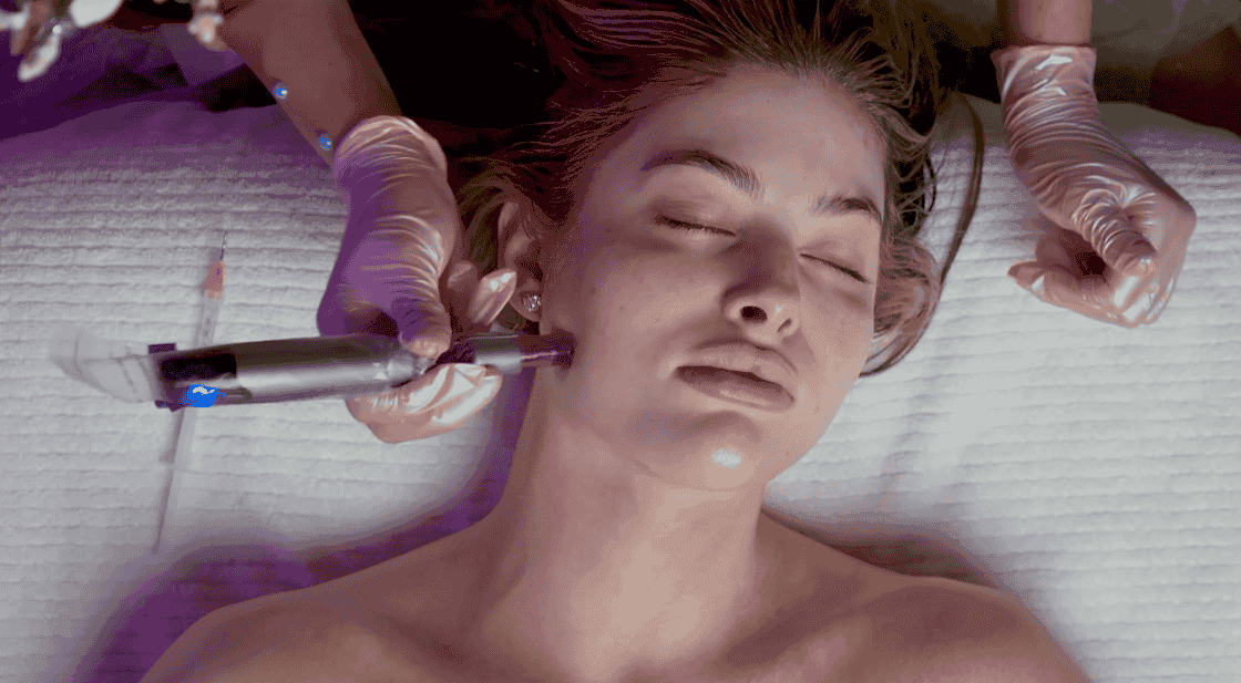 The skin is thoroughly cleansed and prepped to ensure safe, effective penetration.